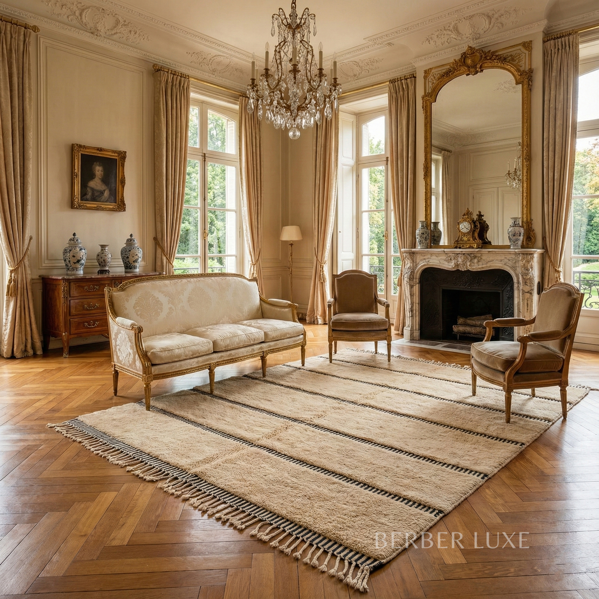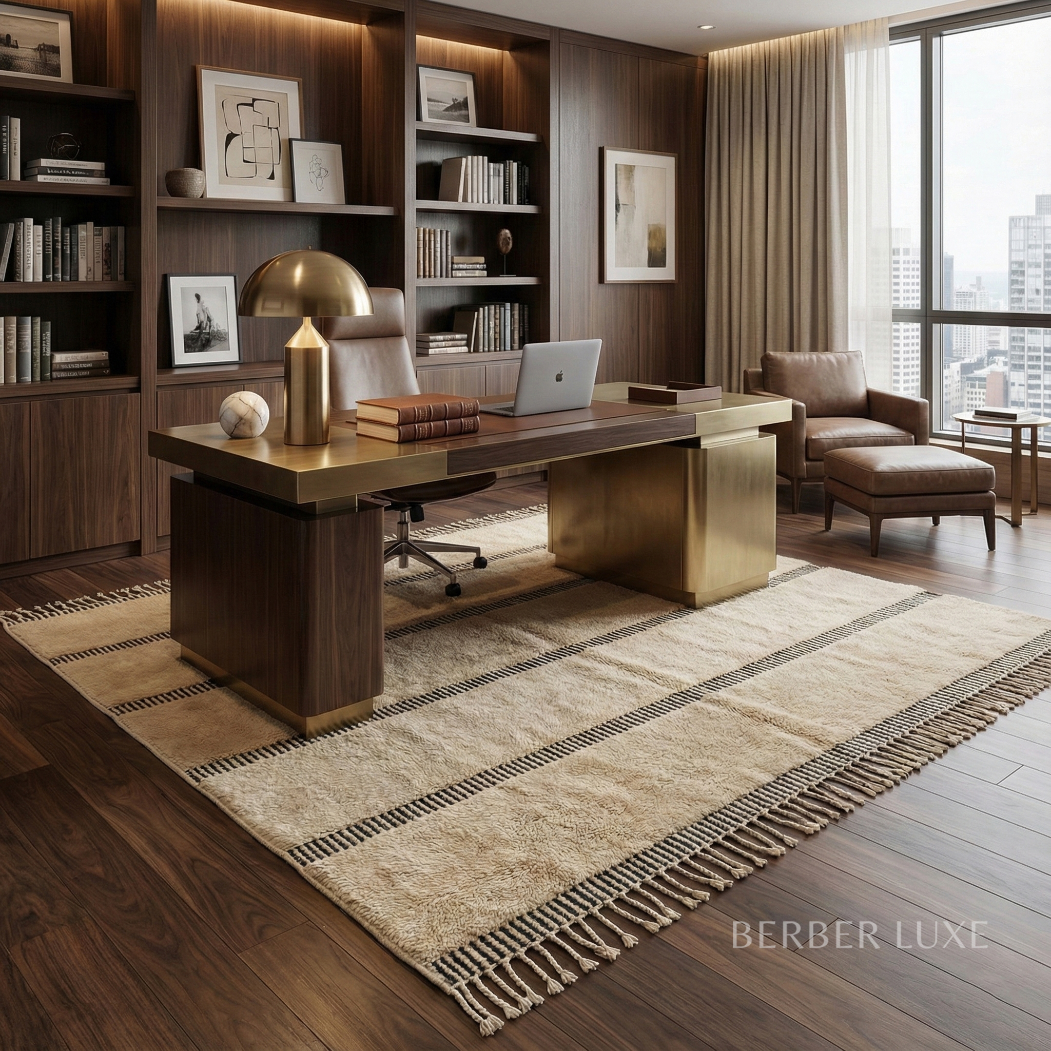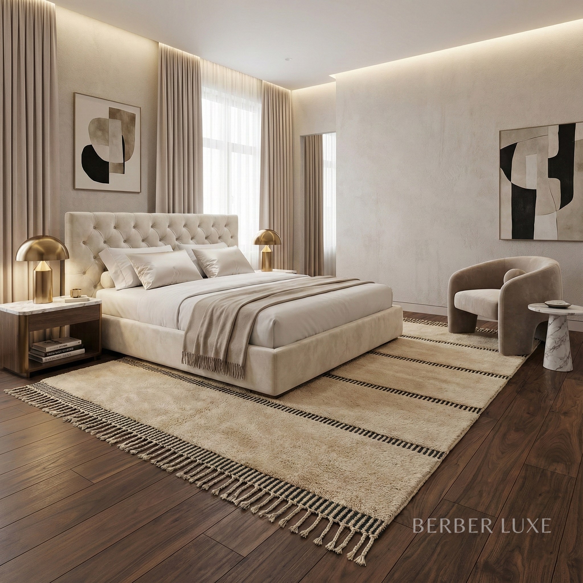 The clean lines, minimalist design, and luxurious texture of a Beni Mrirt rug make it ideal for both modern and traditional interiors.