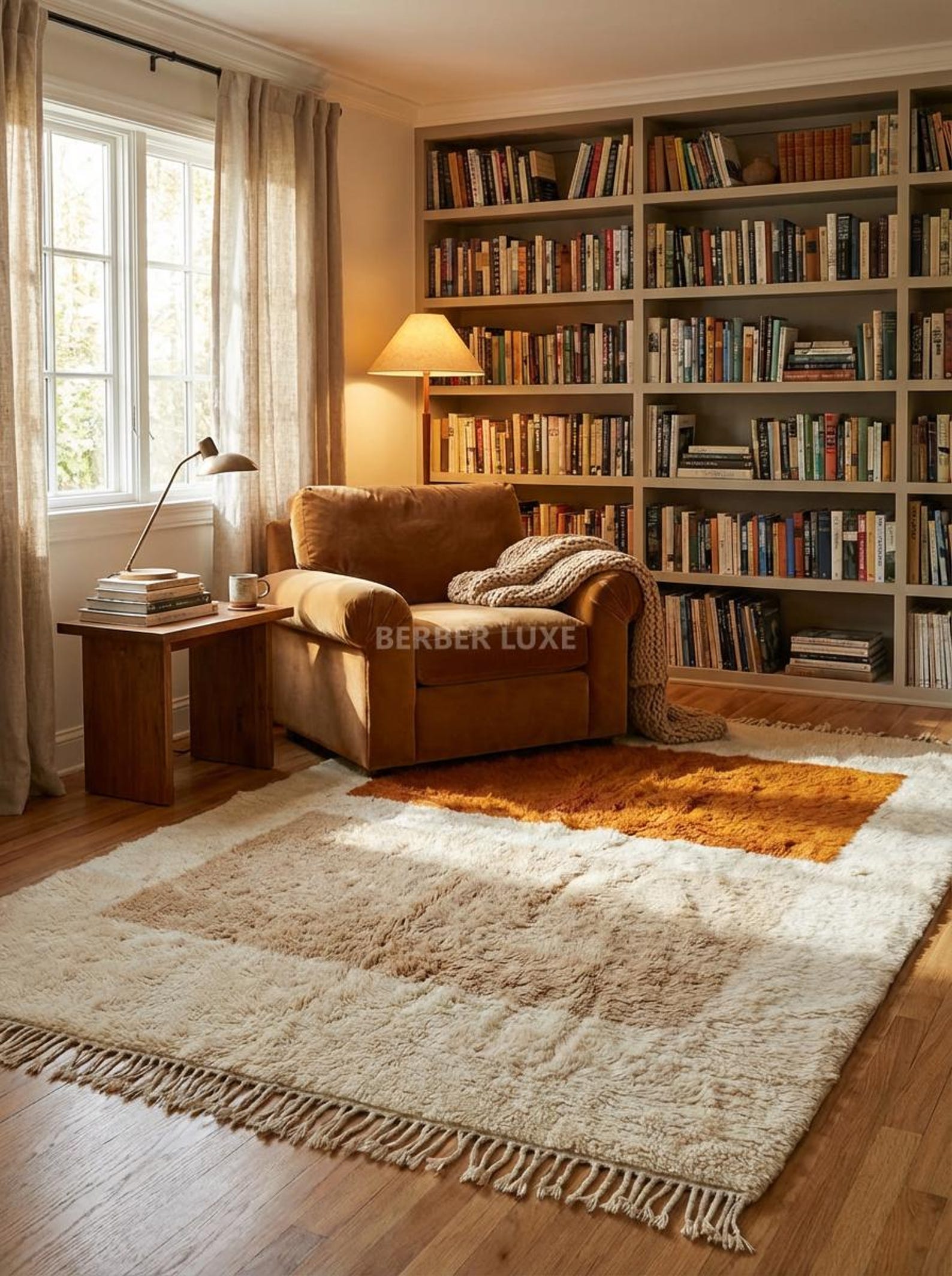 Texture & Warmth: The high pile of a modern Moroccan rug acts as a natural insulator. It instantly warms up a room, both visually and physically. Walking barefoot on this modern Moroccan rug feels like stepping on a cloud.