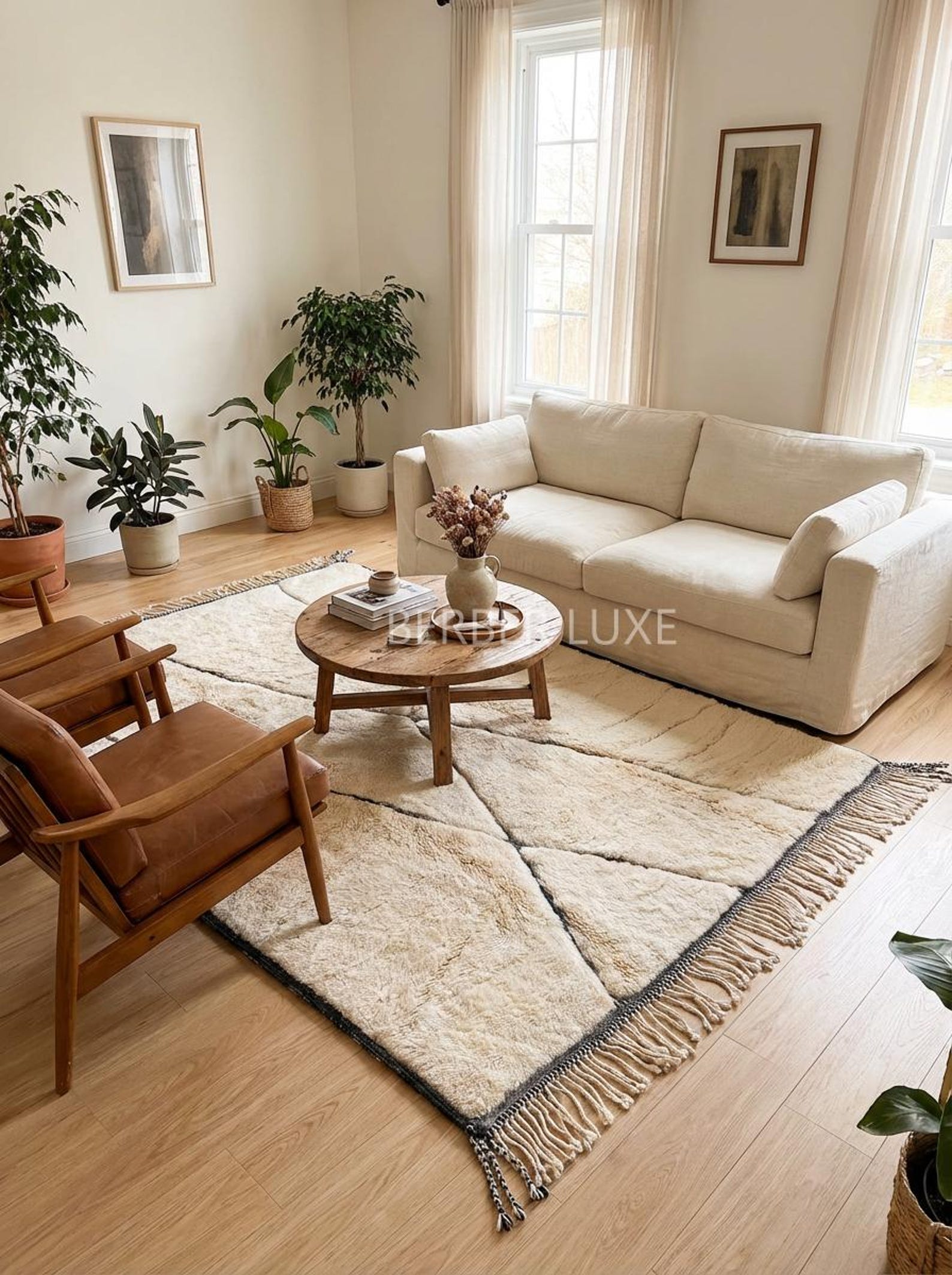Versatility: Unlike colored rugs that lock you into a specific palette, a black and white area rug adapts to your changing tastes. It pairs as beautifully with neutral linens as it does with vibrant velvet sofas or rustic wood furniture.